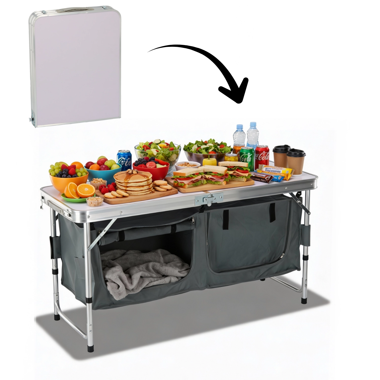 Echipamentul outdoor pentru camping este completat de arzătoare turistice (pe gaz, benzină, alcool), cartușe de gaz, vase și gamele de camping, oale și tigăi, tacâmuri, termosuri și sticle pentru apă. Seturile compacte și pliabile economisesc spațiu în rucsac și sunt totodată stabile și eficiente la gătit. Filtrele și purificatoarele de apă, canistrele, brichetele, chibriturile și uneltele multifuncționale fac tabăra mai ușoară din zori până la lăsarea serii.