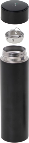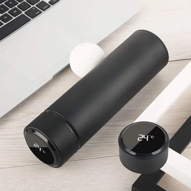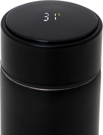 Cană termică elegantă cu afișaj LED tactil al temperaturii pentru monitorizarea comodă a băuturii în deplasare. Pereții dubli cu izolație în vid mențin temperatura ore întregi, oțelul inoxidabil este sigur pentru contactul cu alimentele, iar sita fină reține frunzele de ceai sau reziduurile de cafea. Volum 500 ml, capac etanș și design minimalist negru pentru utilizare zilnică în mașină, la birou și în călătorii.