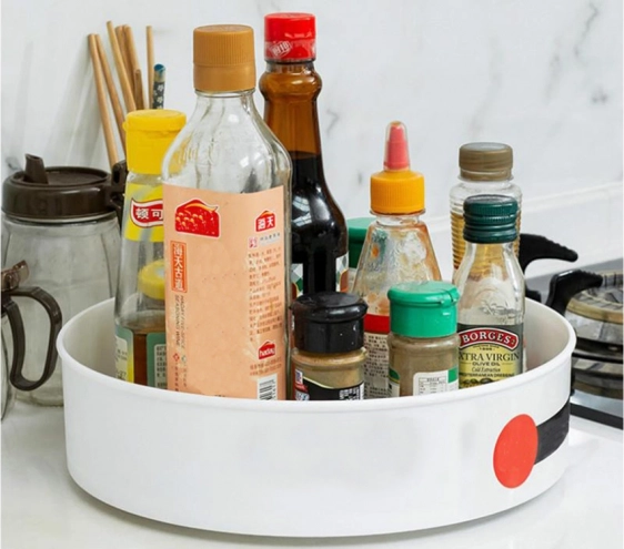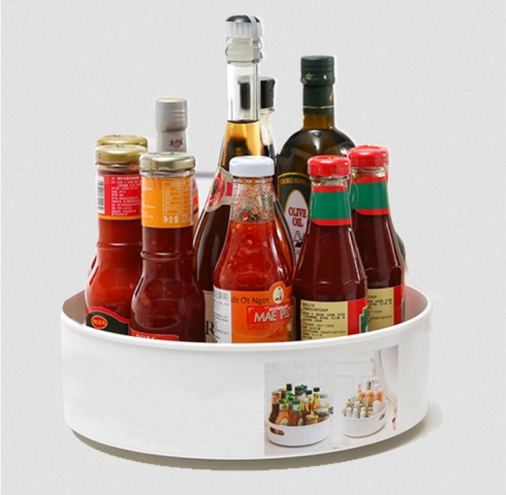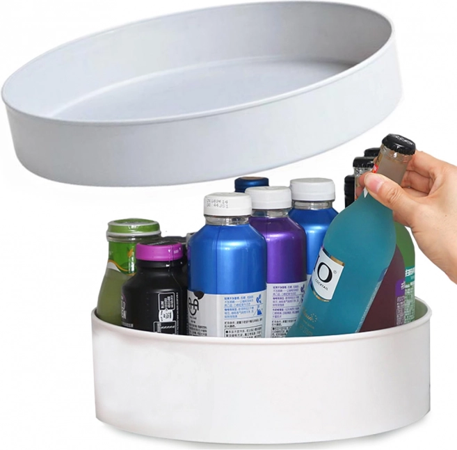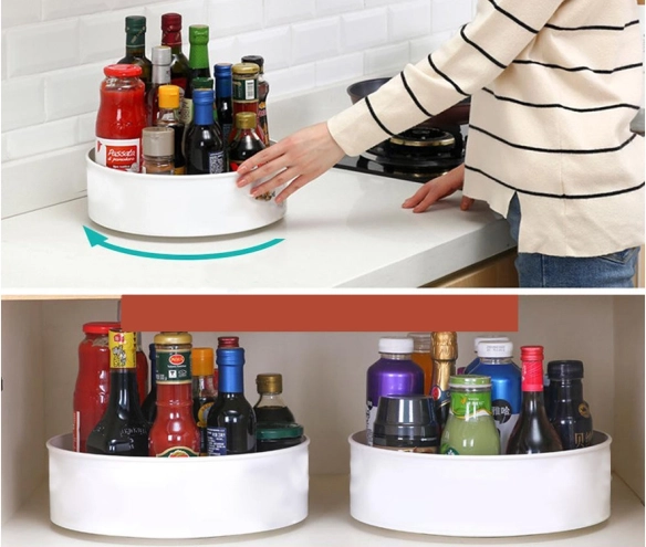 Organizatorul rotativ practic pentru dulapul de bucătărie sau blatul de lucru păstrează condimentele, medicamentele, produsele cosmetice și alte mărunțișuri organizate într-un singur loc. Datorită bazei rotative asigură acces rapid la obiectele depozitate și ajută la menținerea ordinii în gospodărie.