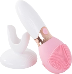 Răsfață-ți pielea cu îngrijire profesională acasă cu peria sonică de masaj pentru față cu suport. Datorită proeminențelor din silicon ultra-fine și pulsațiilor sonice, îndepărtează eficient impuritățile și reziduurile de machiaj, masează delicat și ajută la netezirea liniilor fine și a ridurilor. Este rezistentă la apă, are 2 moduri și 2 niveluri de viteză pentru confort și eficiență maxime.