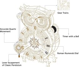 Forma de bufniță cu elemente mecanice detaliate care stârnesc admirația și conferă eleganță interiorului.