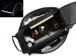 Benzile reflectorizante pentru siguranță sporită și cureaua suplimentară pentru purtarea pe umăr.