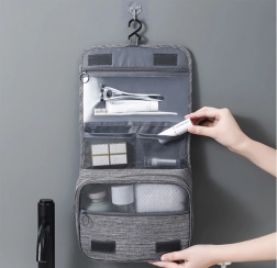 Mențineți produsele cosmetice organizate cu acest organizator de călătorie suspendabil. Designul său spațios oferă posibilitatea de a stoca o gamă largă de produse de toaletă, de la șampoane la perii, și datorită materialului său rezistent la apă nu trebuie să vă temeți de umiditate. Organizatorul este echipat cu o construcție solidă și un sistem de închidere practic, astfel încât lucrurile voastre vor fi mereu la locul lor.