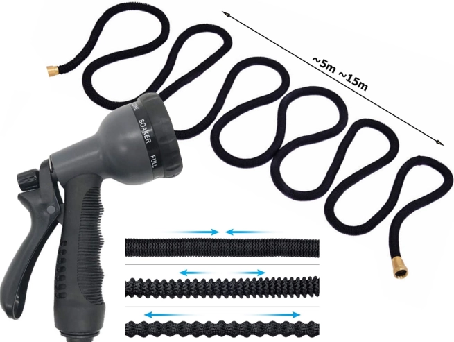 Furtunul de grădină extensibil este un accesoriu esențial pentru fiecare grădină. Acest design inovativ crește de trei ori lungimea sa în timpul utilizării, permițând irigarea ușoară a suprafețelor mari sau spălarea mașinilor. În plus, construcția sa ușoară și flexibilă previne încurcarea și blocarea, făcând lucrul cu el cu atât mai plăcut.