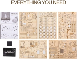 Acest model detaliat și bine realizat de camion este un exemplu excelent de măiestrie. Realizat din piese tăiate cu laser din placaj de tei de 2 mm, care pot fi împinse cu ușurință de pe suport. Scopul este de a dezvolta gândirea tehnică, imaginația și motricitatea fină.