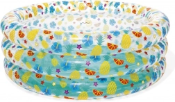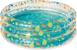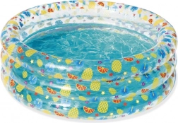Această piscină gonflabilă pentru copii BESTWAY, cu pereți transparenți și imprimeu colorat cu fructe, aduce în grădină atmosfera verii și multe momente de joacă în apă. Datorită dimensiunilor compacte, încape și în spații mai mici, iar după golire se depozitează ușor.
