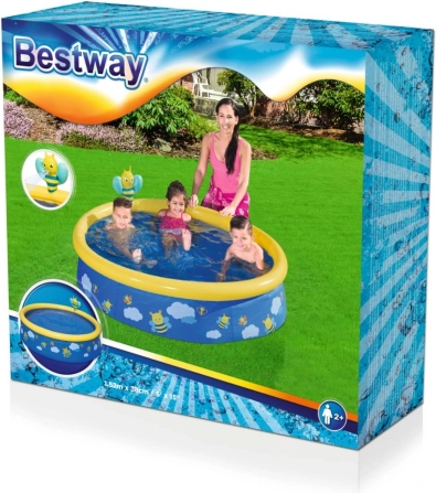 Oferiți-le copiilor propriul lor regat acvatic în grădină. Piscina pentru copii BESTWAY cu motiv de albinuțe se pregătește rapid pentru utilizare, se umple și se golește ușor, iar datorită gulerului gonflabil este plăcută și sigură la atingere pentru micii înotători. Pulverizatorul haios în formă de albină transformă simplele stropeli într-o distracție veselă.