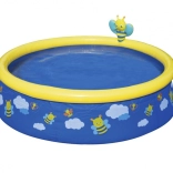 Piscina gonflabilă pentru copii cu motiv de animale marine aduce multă distracție și răcorire în zilele fierbinți. Datorită pulverizatorului integrat în formă de rozetă, conectat la furtunul de grădină, copiii se vor bucura de o ploaie fină de apă, în timp ce gulerul gonflabil asigură confort și siguranță. Valvele ușoare, volumul recomandat de 447 l și PVC-ul de calitate o fac o alegere practică pentru grădină.