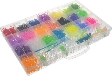 Setul include 4400 de elastice, 3 croșete, 1 praștie, 1 război de țesut și pandantive. Fiecare element este conceput pentru a stimula creativitatea și a ușura realizarea bijuteriilor și a altor decorațiuni.