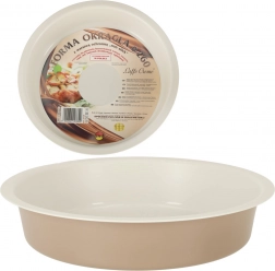 Această formă rotundă pentru copt cu părți laterale și fund neted este o alegere excelentă pentru nevoile tale culinare. Proiectată pentru utilizarea în cuptoare pe gaz și electrice, dar nu este potrivită pentru mașinile de spălat vase. Forma este completată de un design modern în culoare cafea cu lapte.