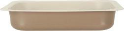 Forma este potrivită pentru utilizare în cuptoare pe gaz și electrice, însă nu este potrivită pentru spălarea în mașina de spălat vase. Tonul exteriorului amintește de cafeaua cu lapte, în timp ce interiorul este de o culoare ecru elegantă.
