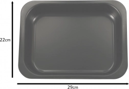 Dimensiunile interne 29 × 22 × 6 cm (externe aprox. 32 × 24 × 6 cm) se potrivesc în majoritatea cuptoarelor și acoperă o gamă largă de rețete dulci și sărate.