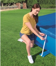 Grație corzilor, husa se prinde cu ușurință de piscină, asigurând stabilitatea acesteia chiar și în condiții de vânt.