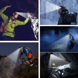 Lanterna frontală universală, cu luminozitate de până la 350 lm, oferă iluminare fiabilă la camping, alergare, reparații și întoarceri pe timp de noapte. Banda COB LED frontală asigură un con de lumină larg de tip flood, în timp ce LED-ul XPE oferă un fascicul concentrat cu bătaie de până la 50 m. Cele 6 moduri se adaptează ușor situației.