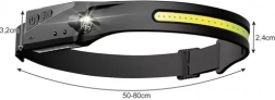 Controlul fără atingere prin senzorul de mișcare este ideal când ai mâinile murdare sau ocupate. Bateria integrată de 1200 mAh se încarcă comod prin USB‑C și asigură 3–8 ore de funcționare, în funcție de modul ales. Construcția din silicon rezistentă, cu IPX4, căptușeala moale din spumă și cureaua ajustabilă 50–80 cm garantează confort pentru copii și adulți.