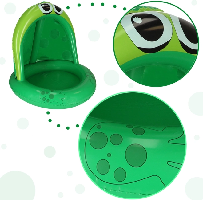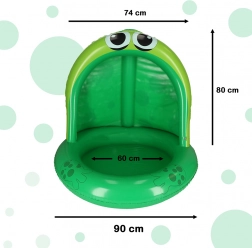 Designul verde vibrant, cu ochi mari de broască și piciorușe gonflabile oferă un aspect autentic. În plus, baldachinul inteligent îi protejează pe copii de radiațiile UV nocive, garantând ore lungi de joacă sigură în apă.