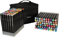 Această paletă bogată de 120 de culori vă stimulează creativitatea și oferă tot ce aveți nevoie pentru desen, umbrire și tranziții fluide. Configurația cu două capete asigură versatilitate – vârf lat teşit pentru suprafețe mari și vârf fin pentru detalii precise.