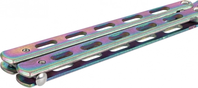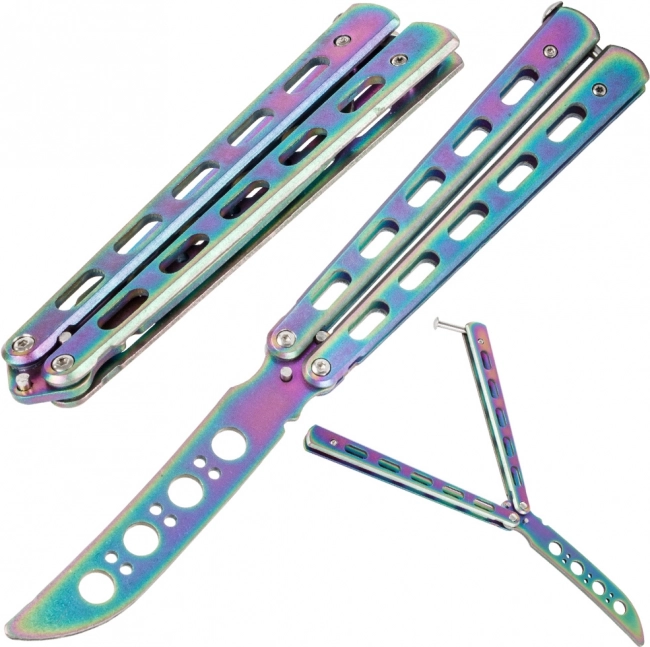 Suprafața atractivă curcubeu oferă cuțitului un aspect și stil unic.