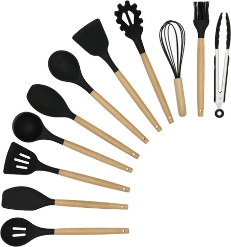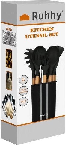 Setul de instrumente de bucătărie marca Ruhhy conține 12 instrumente diverse, inclusiv spatule, polonice și perii, toate cu mânere ergonomice din lemn și capete din silicon rezistente. Aceste instrumente sunt rezistente la temperaturi înalte, ușor de curățat și previn zgârierea ustensilelor dvs. de bucătărie.
