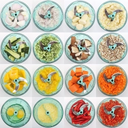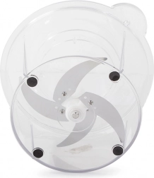 Aparatul este echipat cu un cuțit inoxidabil cu patru lame, care poate toca cu ușurință orice produs. Picioarele anti-alunecare vă permit să folosiți tocatorul în mod sigur și stabil.