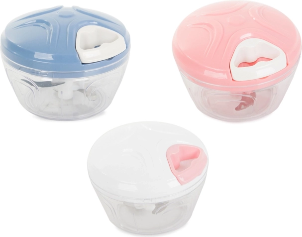 Acest tăietor manual inovator este soluția ideală pentru orice bucătărie. Tot ce trebuie să faci este să tragi de sfoară și cele trei lame din oțel inoxidabil vor tăia rapid și precis legumele, fructele, nucile și ierburile.