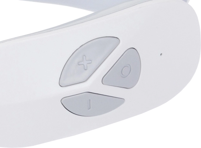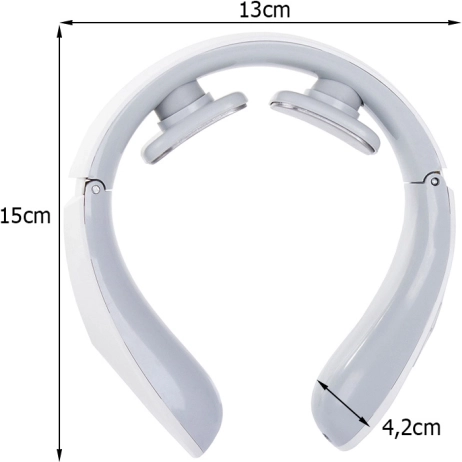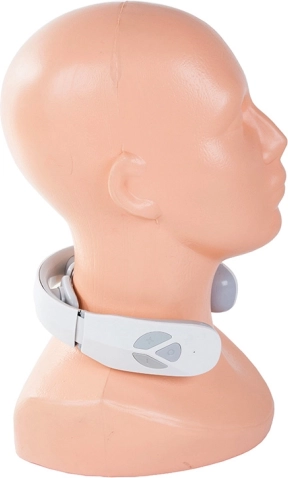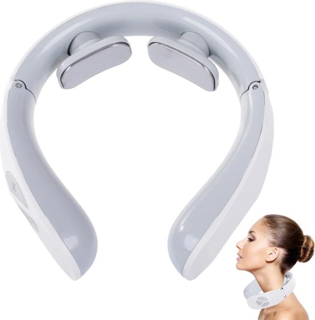 Aparatul de masaj pentru gât oferă un ajutor eficient în durerile de gât, ceafă și spate, stimulând și îmbunătățind circulația sângelui. Aparatul oferă 12 programe cu posibilitatea de a seta intensitatea impulsurilor. Este alimentat cu două baterii AAA, care sunt incluse în pachet.