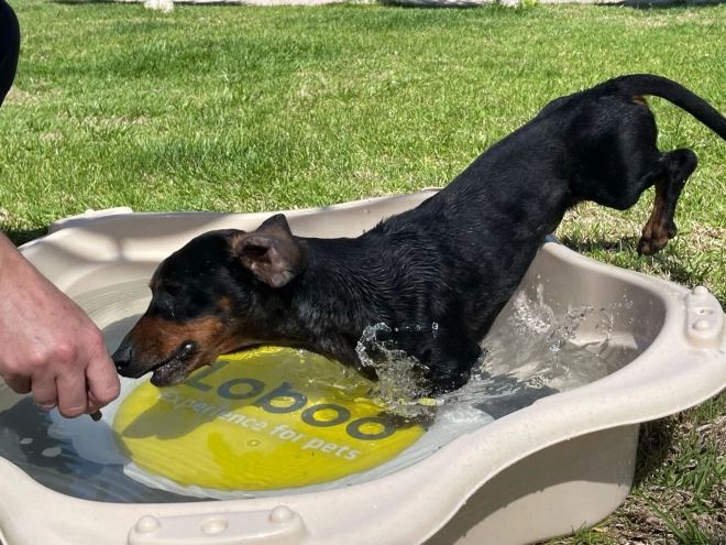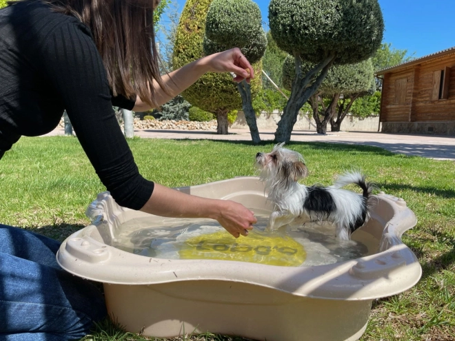 Designul bine gândit, cu margini rotunjite și sigure, previne rosul, în timp ce canalele practice de drenaj împiedică revărsarea. Piscina este stivuibilă pentru economie de spațiu, iar datorită mânerului o puteți transporta comod oriunde – în curte, pe terasă sau în călătorii cu animalele.