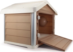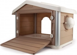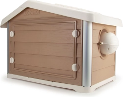 Peretele din spate poate fi rabatat și blocat în siguranță, transformând căsuța într-un foișor deschis. În interior este mai multă lumină și aer, iar animalul are un confort sporit; în același timp, ai acces ușor la interior pentru curățare.