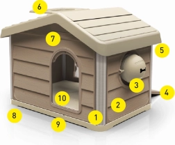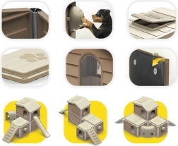 Sistemul modular din 6 piese principale permite asamblarea și demontarea ușoară fără unelte, ceea ce face căsuța ideală pentru grădină, terasă și pentru transport. Dozatorul interactiv de hrană uscată susține o alimentație mai lentă și mai sănătoasă și stimulează într-un mod distractiv instinctele naturale ale câinelui sau pisicii.
