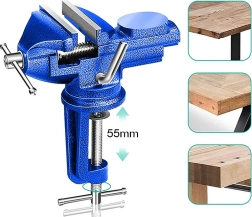 Menghină universală rotativă din fontă solidă pentru atelier și garaj. Oferă o bază rotativă de 360°, construcție robustă, nicovală integrată și fixare fiabilă pe blatul mesei până la aproximativ 55 mm. Ideală pentru prelucrarea metalelor, țevi, plăci PCB și alte materiale.