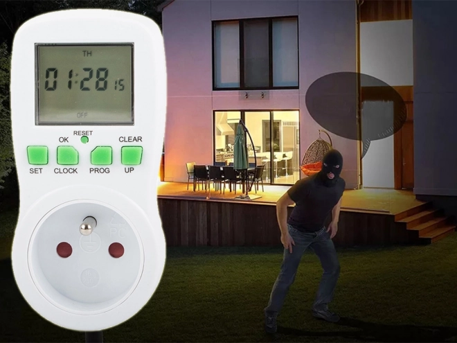 Temporizator digital practic pentru priză, cu afișaj LCD mare, vă permite să porniți și opriți automat aparatele conform programului setat. Economisește energie, crește siguranța și confortul, oferă până la 16 programe, mod de comutare aleatorie pentru simularea prezenței și cronometru invers. Sarcină maximă 3680 W / 16 A și control precis al timpului în mod 24/12 h.
