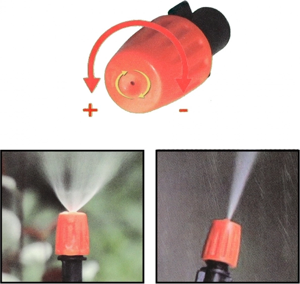 - Duze reglabile pentru ceață fină sau stropire mai puternică