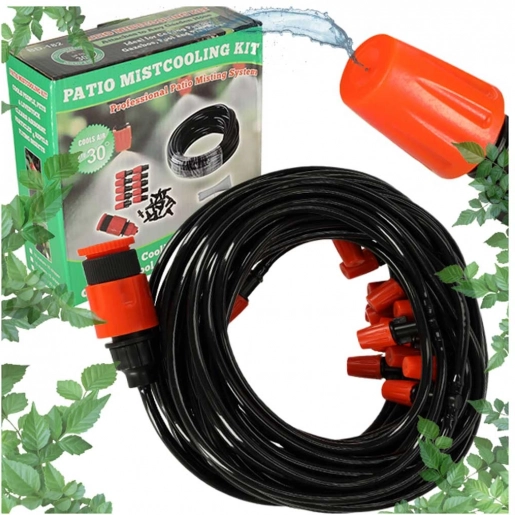 Setul practic de ceață transformă grădina, terasa sau sera într-un loc plăcut și răcoros. Ceața fină de apă îmbunătățește climatul în zilele toride, limitează supraîncălzirea și crește confortul pentru relaxare și joaca copiilor. Sistemul servește concomitent ca irigare economică – distribuie uniform apa către plante fără risipă.
