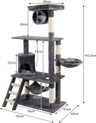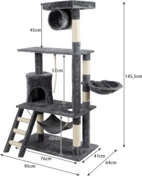 Acest drăguț gri pentru pisici este perfect pentru a oferi prietenului tău felin un loc dedicat pentru zgâriat, joacă și relaxare. Cu o înălțime de 141cm și multiple niveluri, drăguțul devine rapid locul preferat al pisicii tale.