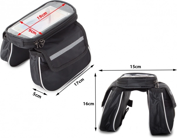 Această geantă pentru cadrul bicicletei este fabricată din material durabil, ceea ce îi garantează o durată de viață lungă chiar și în cazul utilizării intensive. Utilizarea fără probleme a telefonului mobil în timpul mersului este asigurată de partea frontală transparentă.
