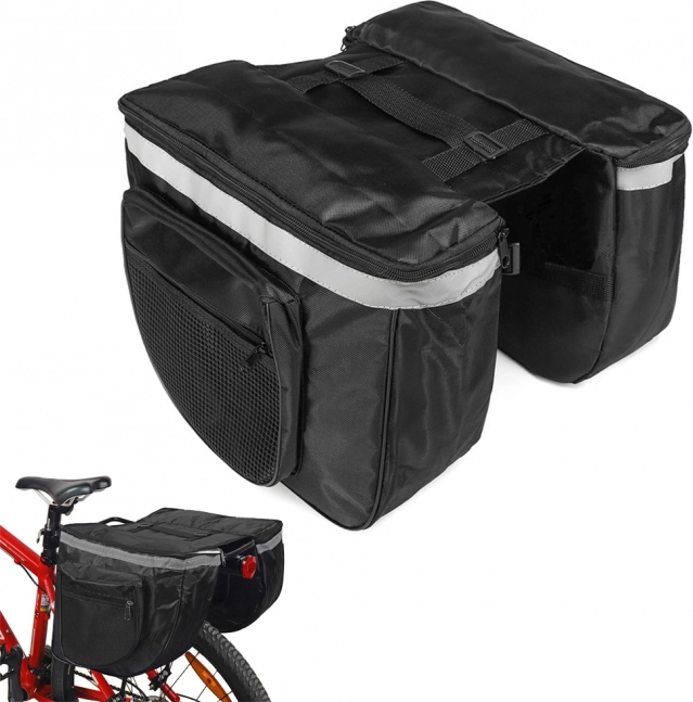 Geantă multifuncțională pentru bicicletă ideală pentru excursii mai lungi cu bicicleta. Permite împachetarea ușoară a hainelor, lucruri mărunte sau alimente datorită celor două compartimente mari și buzunarelor mai mici cu fermoar.