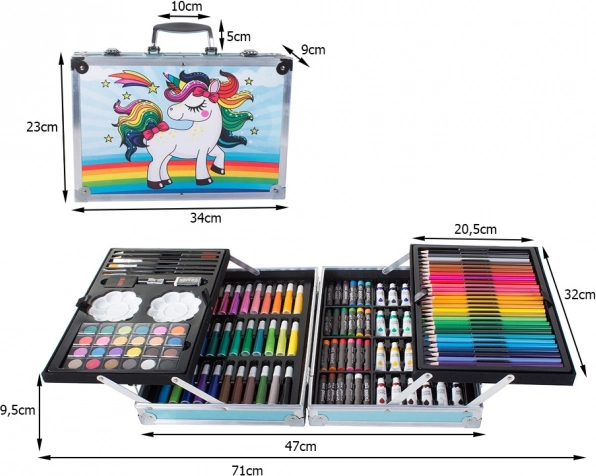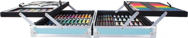 Bucurați-vă de ore de distracție cu acest set de artă creativ, care oferă diverse medii precum creioane pastel cu ulei, markere, acuarele și altele. Tot ce aveți nevoie pentru a crea opere de artă originale este ascuns într-o geantă practică, care facilitează transportul și organizarea.
