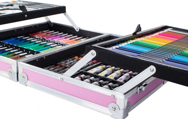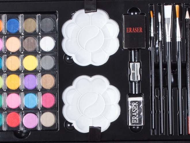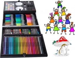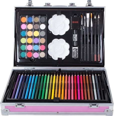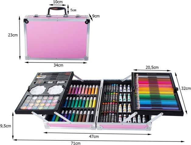 Set creativ 145 bucăți este ideal pentru toți iubitorii de pictură. Include o gamă largă de culori și instrumente care facilitează creația operelor creative. Cu această servietă gata de utilizare, nu va mai trebui să căutați ustensilele necesare.