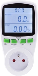 LCD-ul mare, iluminat, și cele patru butoane (SET, ENERGY, COST, UP) facilitează setarea și citirea valorilor-cheie, precum tensiunea, curentul, puterea, frecvența și durata măsurării.