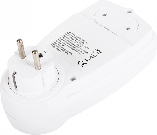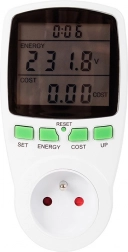 Acest wattmetru de priză este ideal pentru locuințe și birouri, unde doriți să țineți consumul de energie sub control. Pe afișajul iluminat afișează tensiunea, curentul, puterea, frecvența, durata măsurării și estimarea costurilor în funcție de prețul introdus pe kWh. Controlul simplu prin patru butoane asigură o utilizare comodă zi de zi.
