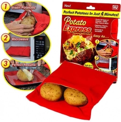 Descoperă o modalitate simplă de a pregăti cartofi copți perfect la cuptorul cu microunde. Punguța pentru copt cartofi POTATO EXPRESS creează un mediu ideal cu abur, care menține umiditatea optimă și asigură o gătire uniformă. Rezultatul: cartofi cu coajă fină și crocantă și interior delicios, pufos.