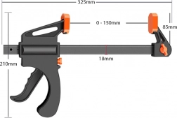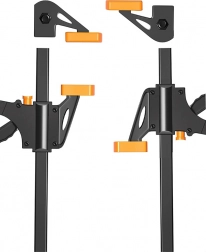 Acest clește ușor și rezistent, operabil cu o singură mână, este ideal pentru tâmplărie, montaj și proiecte DIY. Sistemul glisant cu eliberare rapidă permite control comod cu o singură mână, în timp ce trăgaciul cauciucat ajută la dozarea lină a presiunii de prindere. Prin rearanjarea fălcii superioare, schimbi ușor modul și folosești unealta ca distanțier.