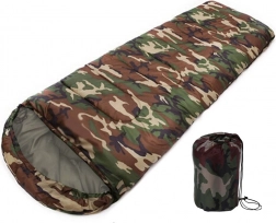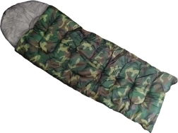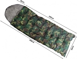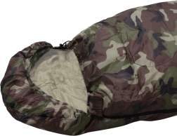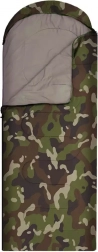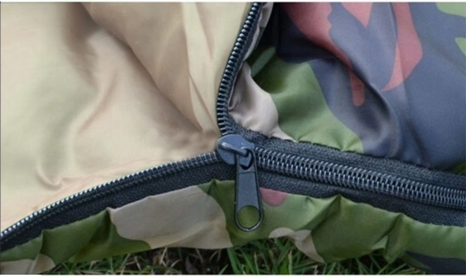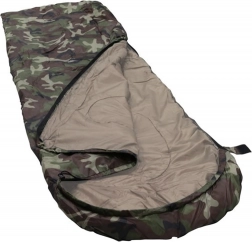Sac de dormit practic tip mumie, în nuanțe de verde și maro, care se potrivește perfect în natură. Datorită glugii cu șnur de strângere, se întărește protecția împotriva frigului și crește confortul pe timpul nopții. Fermoarul pe toată lungimea permite aerisire ușoară și deschiderea completă ca pătură.