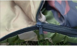 Fermoarul se deschide până în partea de jos pentru aerisire ușoară și pentru a-l transforma într-o pătură. Banda cu arici previne deschiderea accidentală.