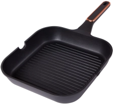 Bucurați-vă de fripturi suculente, legume și brânzeturi cu un model pronunțat de grătar. Aluminiul turnat sub presiune asigură o distribuție rapidă și uniformă a căldurii, în timp ce suprafața antiaderentă minimizează nevoia de ulei și garantează servirea ușoară, fără lipire.