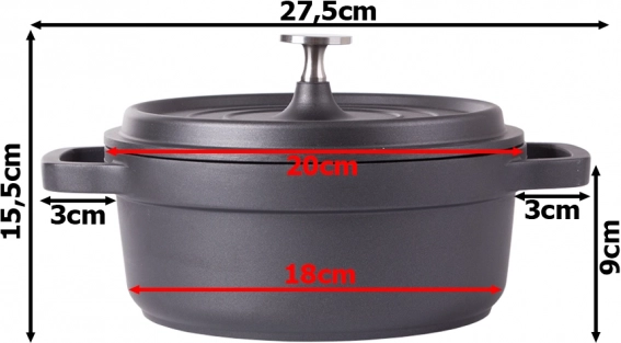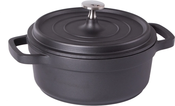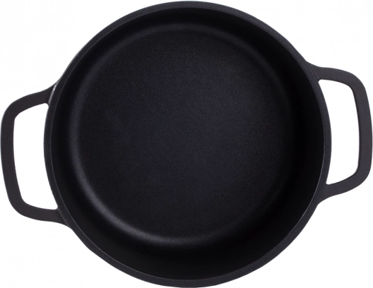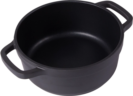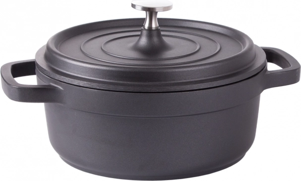 Oală practică, cu volum de 2,2 l, din aluminiu turnat rezistent, cu suprafață antiaderentă pentru gătit și copt ușor. Potrivită pentru toate tipurile de plite, inclusiv inducție și pentru cuptor. Oferă încălzire rapidă, distribuție uniformă a căldurii și mânere ergonomice, sigure.