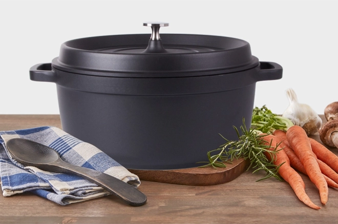 Oala este compatibilă cu plite cu inducție, pe gaz, electrice, vitroceramice și cu halogen și poate fi folosită și în cuptor. Mânerele ergonomice oferă o prindere fermă și o manipulare sigură la transport.