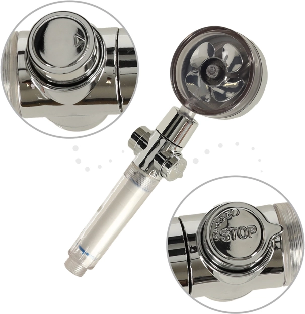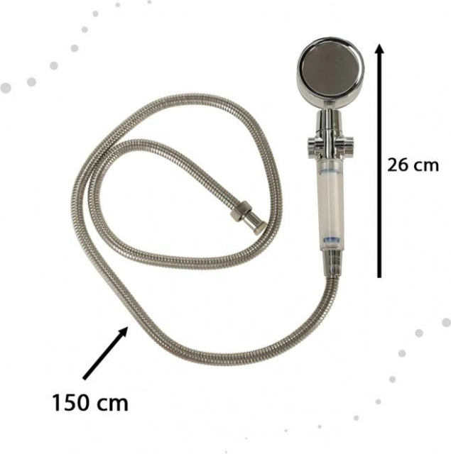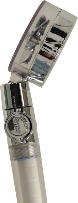 Designul argintiu elegant se potrivește perfect cu orice interior de baie și este ușor de curățat datorită construcției care se poate demonta și monta rapid. Principalele avantaje ale acestui produs sunt economisirea apei, îmbunătățirea presiunii apei și posibilitatea opririi imediate a fluxului fără a manipula robinetul.