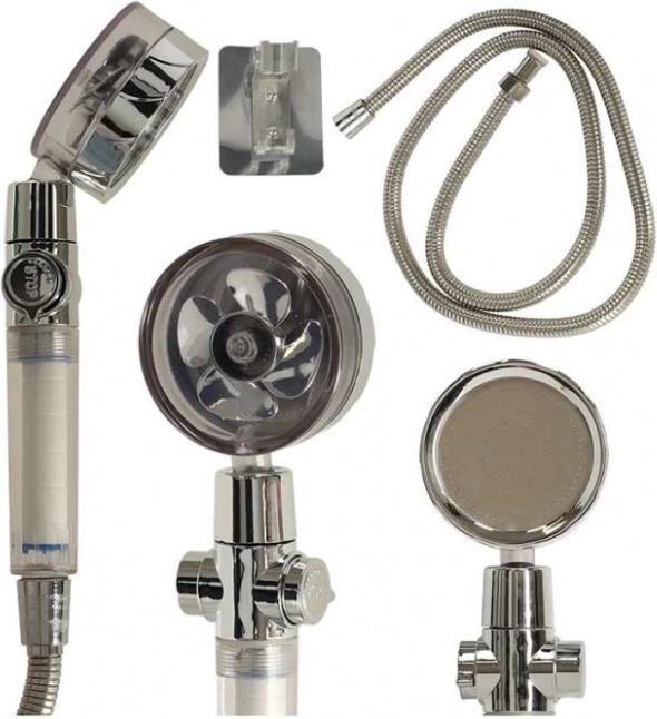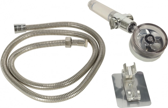 Indiferent dacă aveți cadă sau duș, acest cap de duș este un accesoriu esențial pentru baia dumneavoastră. Turbina încorporată și numeroasele orificii mici asigură un control excelent asupra presiunii apei și economisesc apa și banii dumneavoastră. Datorită reglării laterale a debitului de apă, puteți ajusta ușor fluxul conform nevoilor personale. Setul include și un furtun de duș și un suport pentru montarea facilă pe perete. Lungimea furtunului permite utilizarea confortabilă, atât pentru igiena personală, cât și pentru curățeanța dușului.
