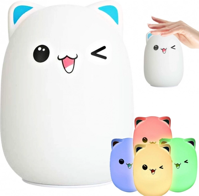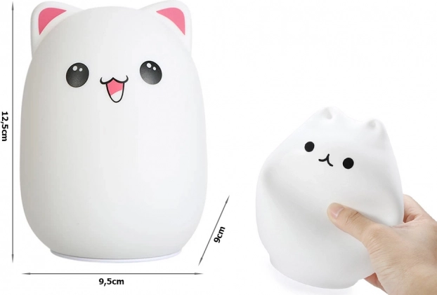 Această lampă pisicuță adorabilă este realizată din silicon moale, plăcut la atingere, care este solid, durabil și sigur pentru copii. Datorită dimensiunilor compacte, se potrivește perfect pe noptieră sau în pătuț. Lampa luminează discret și îi ajută pe cei mici să adoarmă liniștiți, fără frică de întuneric.